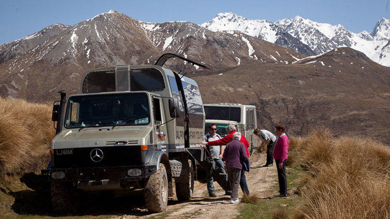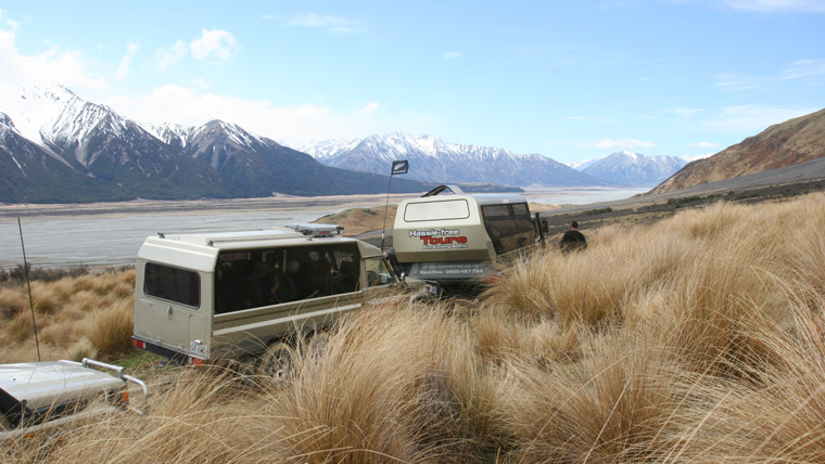 The day begins with a scenic drive from Christchurch across the vast farmlands of the Canterbury plains before making its way to Mt Somers where the tour starts heading inland. At this point the scenery starts to change from the lush green fields of the Canterbury plains to the rugged tussock and snow-covered mountains of the Canterbury High Country. As the tour ventures deeper into this mountainous area, the scenery becomes even more breathtaking and dramatic. Along the way, our guide will deliver a commentary on all aspects of farming, geography and history of the area. The tour stops to enjoy morning tea on the banks of Lake Heron. After morning tea the tour continues the journey to arrive at Lake Heron Station at which point the road ends and the tour begins its exciting 4x4 adventure over these two spectacular private high country stations. The 4x4 adventure follows Lake Stream around to the Rakaia River and onto Glenfalloch Station, we will stop for some amazing photo opportunities along the way. Arriving at Glenfalloch Station there will be a gourmet lunch provided at a location truly like no other, you will be in awe of the views. After enjoying a delicious lunch and having the opportunity to talk with the station owners the tour begins its journey home down the south bank of the Rakaia River to the Rakaia Gorge at which point the tour will return to Christchurch.
